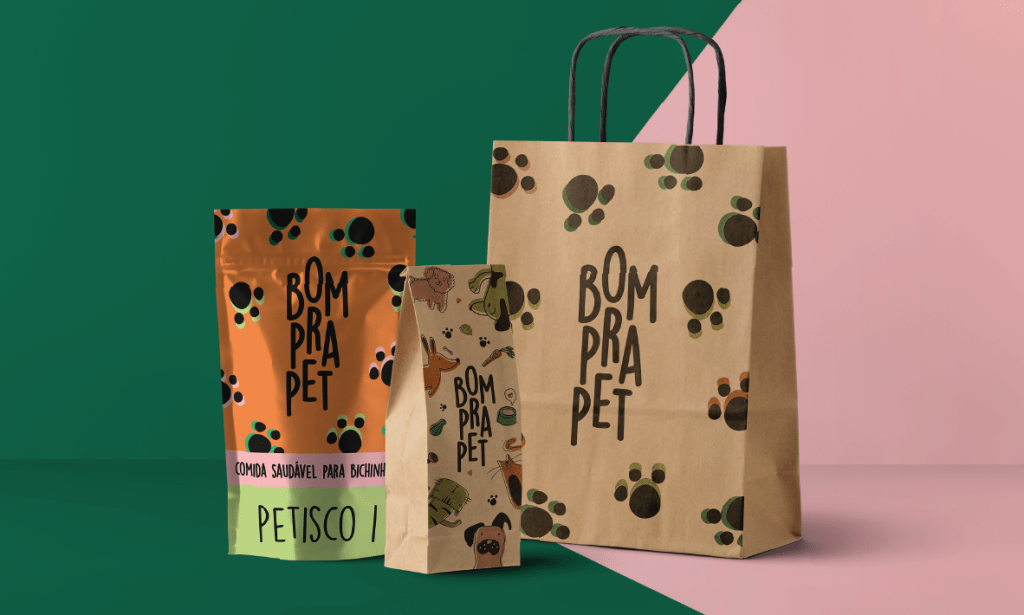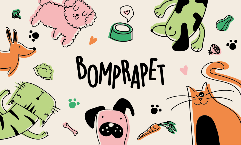 A Bomprapet faz comida saudável para o seu bichinho. Eles investem em alimentação natural para que o animal viva melhor e com mais prazer. É sobre afeto, atenção e saúde. Sua identidade busca expressar tudo isso.