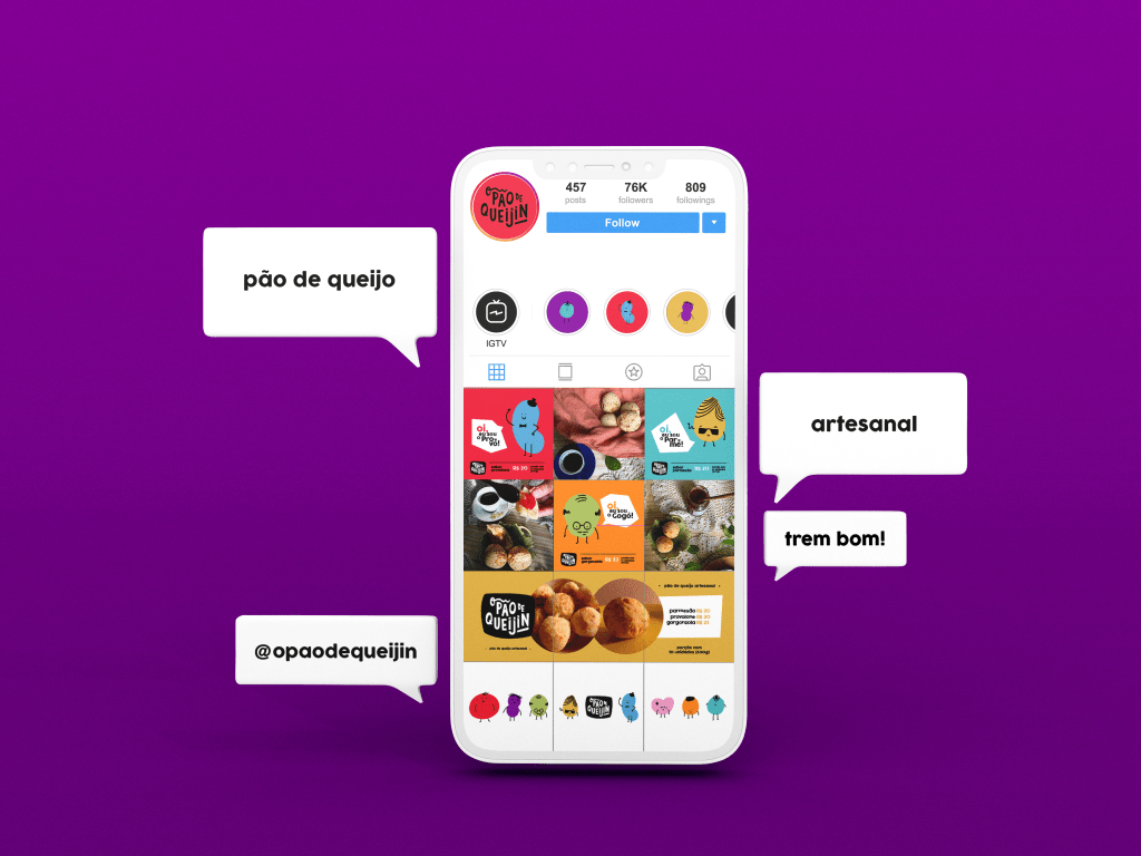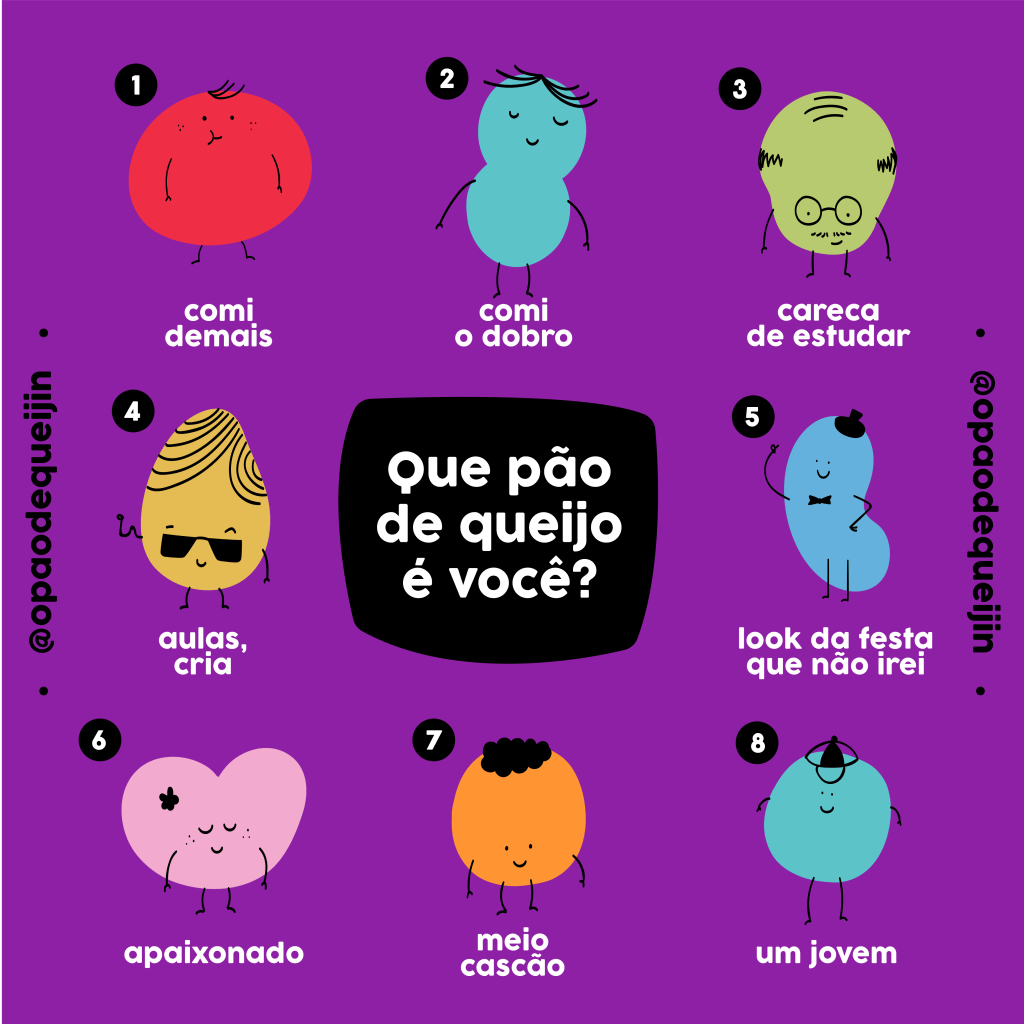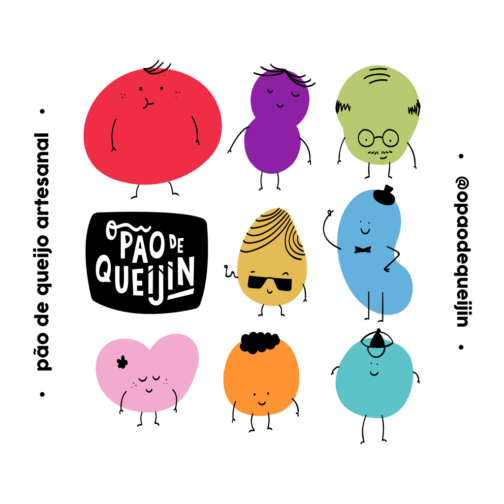 Identidade visual para pão de queijaria artesanal. Feitos por uma mineira que mora em Pernambuco, os pães de queijo têm sabores e personalidade própria. Essa foi a deixa para a criação de uma marca divertida, com personagens fofos que personificam as formas engraçadas dos pãezinhos saindo do forno.