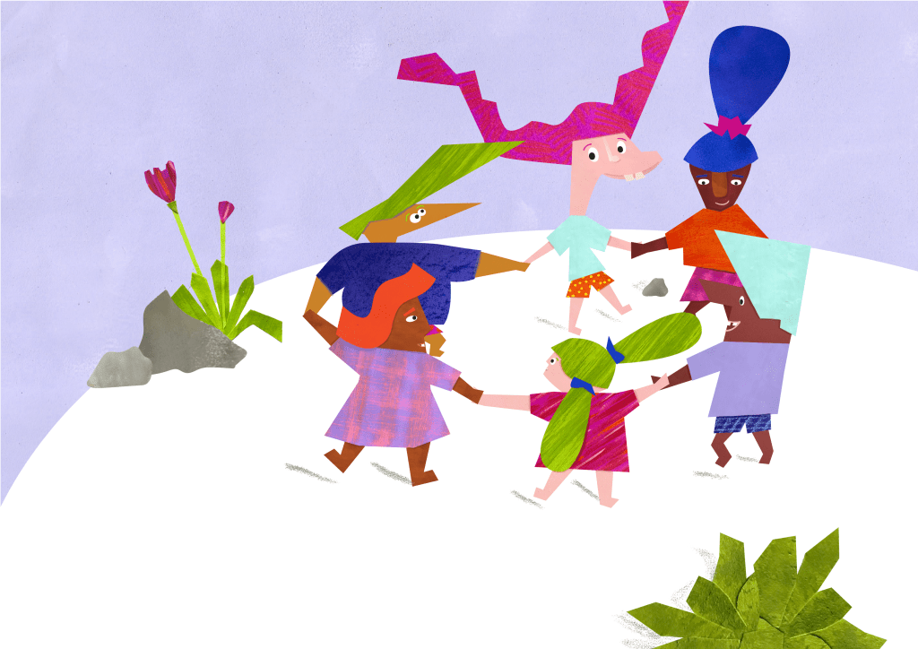 Ilustrações para livro publicado pela Elefante Letrado. As narrativas são inspiradas em três cantigas de roda diferentes: “A Canoa Virou”, “Ciranda, Cirandinha” e “Roda Cotia”.