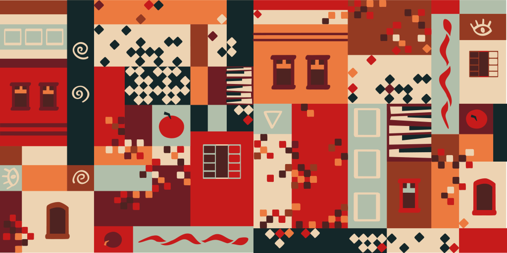 Há janelas abertas, prontas para uma fuga para o mundo. Fachadas de Olinda, seu mundo particular. Teclas de piano espalhadas para lembrar os caminhos que escolheu não percorrer. Texturas que retratavam os pisos em seus quadros, para mostrar o território onde resolveu fincar os pés. Dá pra ver até as maçãs de seus quadros, o fruto do pecado que fez questão de tirar do pé.